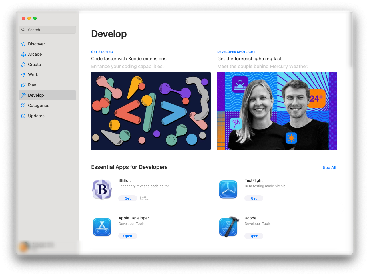 맥 운영체제(Mac OS)에서 설치가능한 소프트웨어가 카테고리별로 정리되어 있는 스토어(Store)이다.