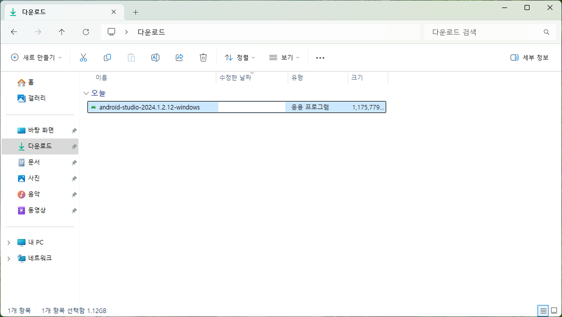 안드로이드 스튜디오 설치 파일을 다운로드한다.