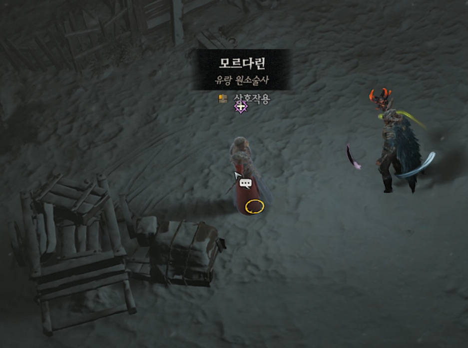 지도에서 모르다린 유랑 원소술사 이방인을 찾아서 만나면 퀘스트가 시작된다.