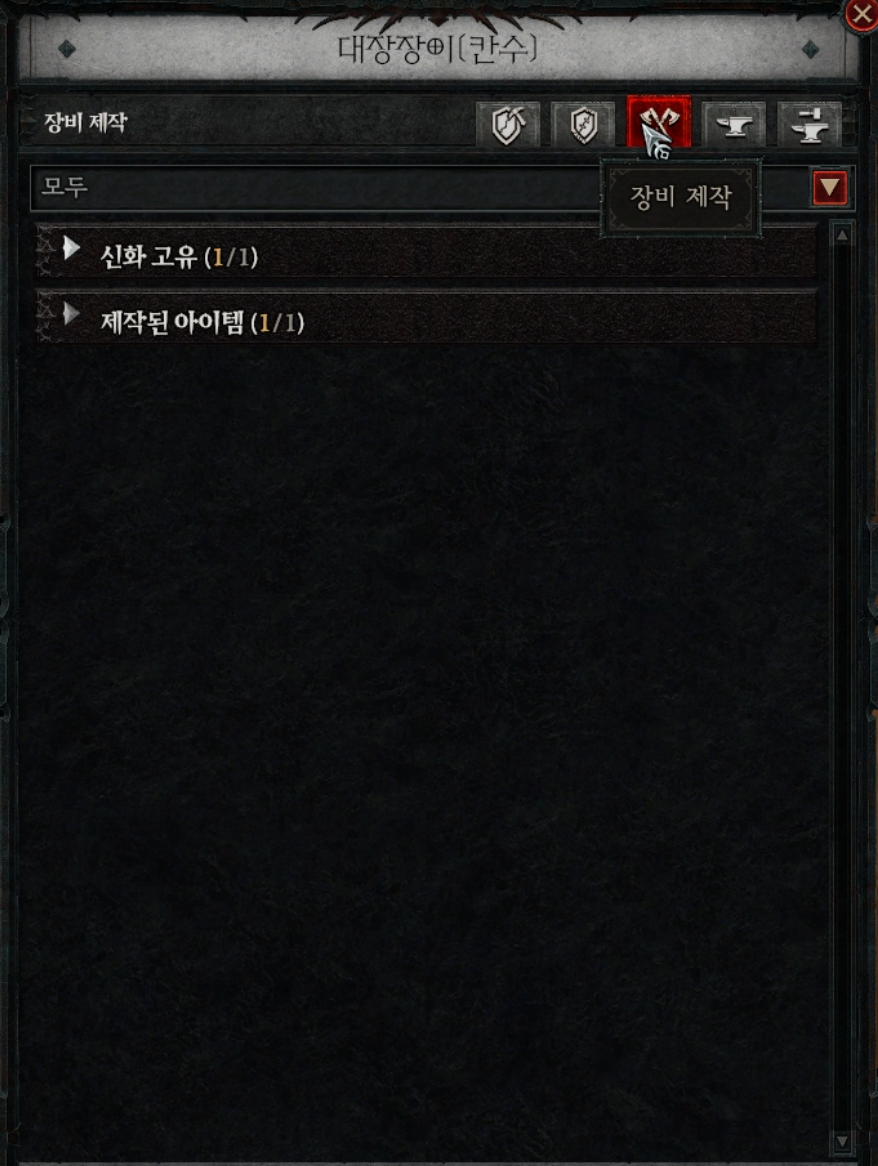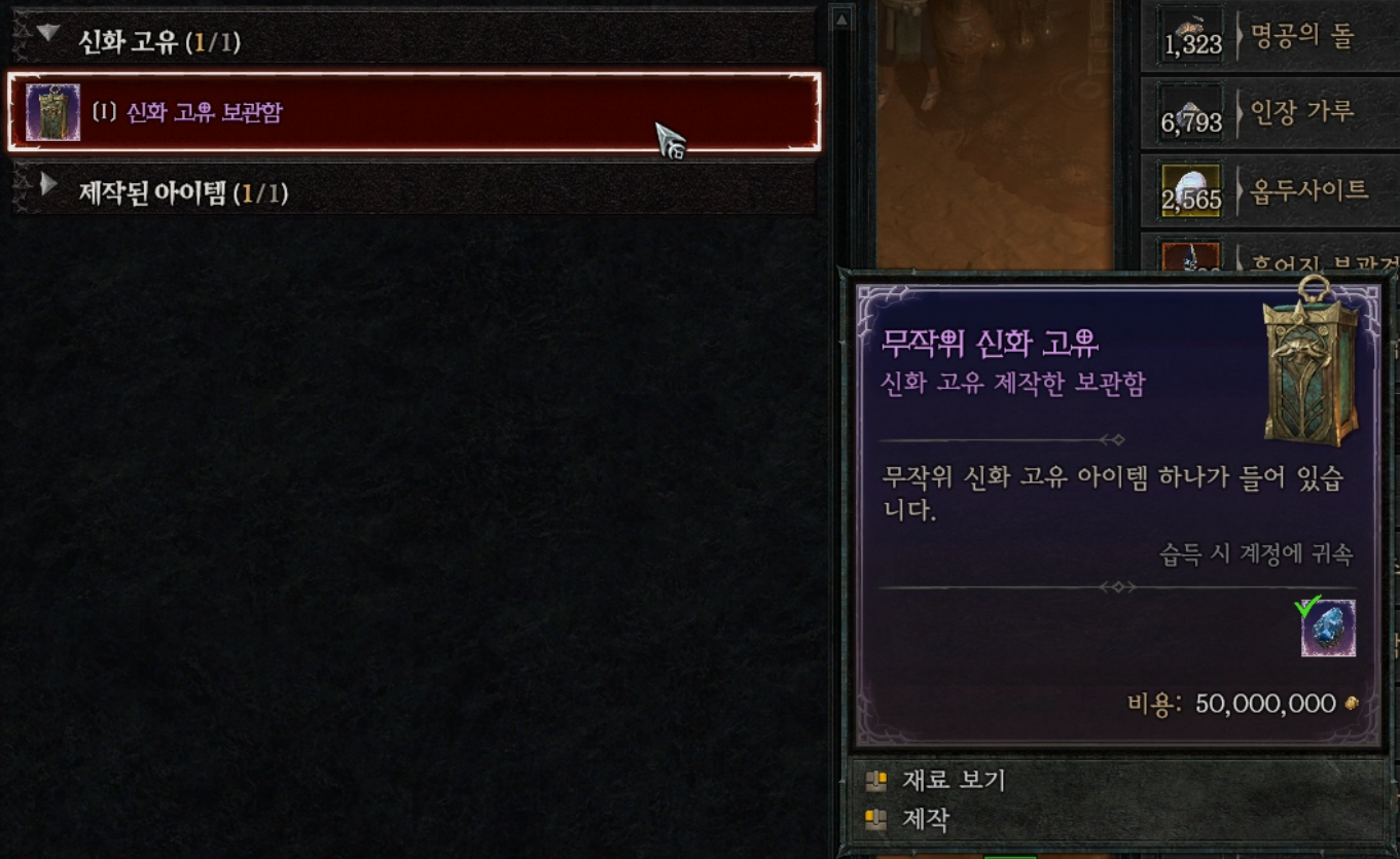 [장비 제작] - [신화 고유] 메뉴 : 신화 고유 보관함