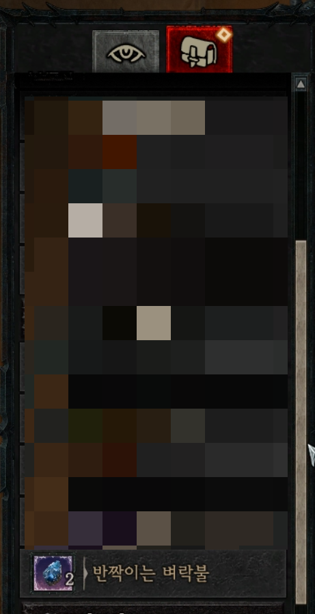 반짝이는 벼락불 개수 확인방법: 캐릭터 화면에서 가방 아이콘 상자