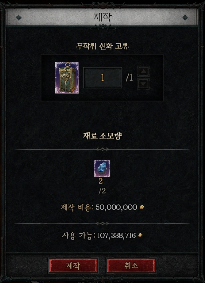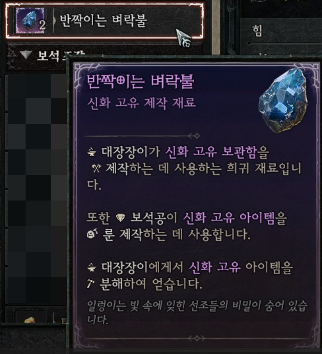 [장비 제작] - [신화 고유] 메뉴 : 신화 고유 보관함
