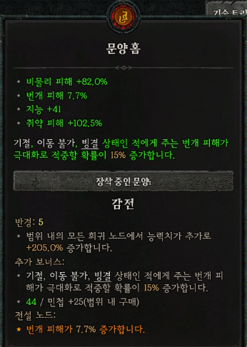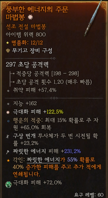 아이템, 정복자, 마녀술에서 공격 속도, 극대화 확률, 짜릿한 에너지 피해 옵션이 있는 장비로 맞추는 걸 추천한다.