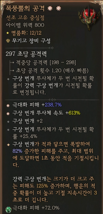 폭풍뿔의 공격 중심점: 구상번개 투사체가 두 번 시전 될 확률이 강력 구상 번개가 시전 될 확률로 변경