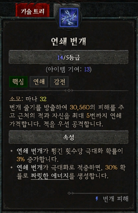 짜릿한 에너지 생성 스킬: 연쇄번개, 구상번개