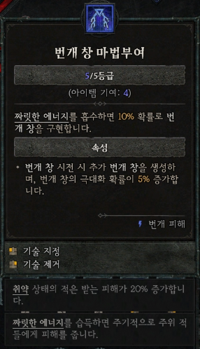 2-3. 번개 줄기 - 강화된 번개 줄기 - 파괴적인 번개 줄기 5/5 (아이템 기여: 4)