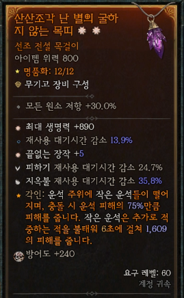 1-6. 목걸이: 산산조각 난 별의 굴하지 않는 목띠 (각인: 운석 주위에 작은 운석 떨어짐)