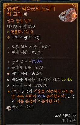 1-7. 반지1: 맹렬한 싸움꾼의 노래기의 고리 (각인: 궁극기 기술 시전시 피해, 기술 등급 증가)