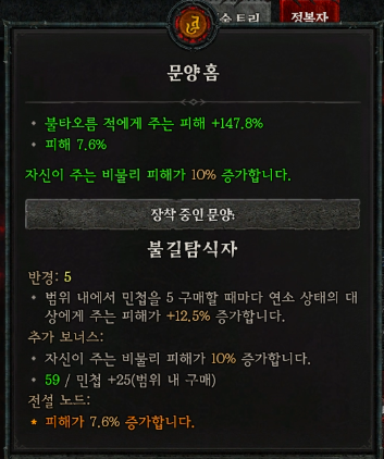 지옥불 재사용 대기시간 및 궁극기 재사용 대기시간 감소 효과가 있는 아이템을 장착해서 지옥불 사용시간을 줄일 수 있다.