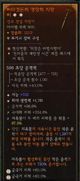 1-9. 양손 무기: 아마겟돈의 명장의 지팡이 (각인: 지옥불 지속시간 동안 작은 운석 떨이짐)