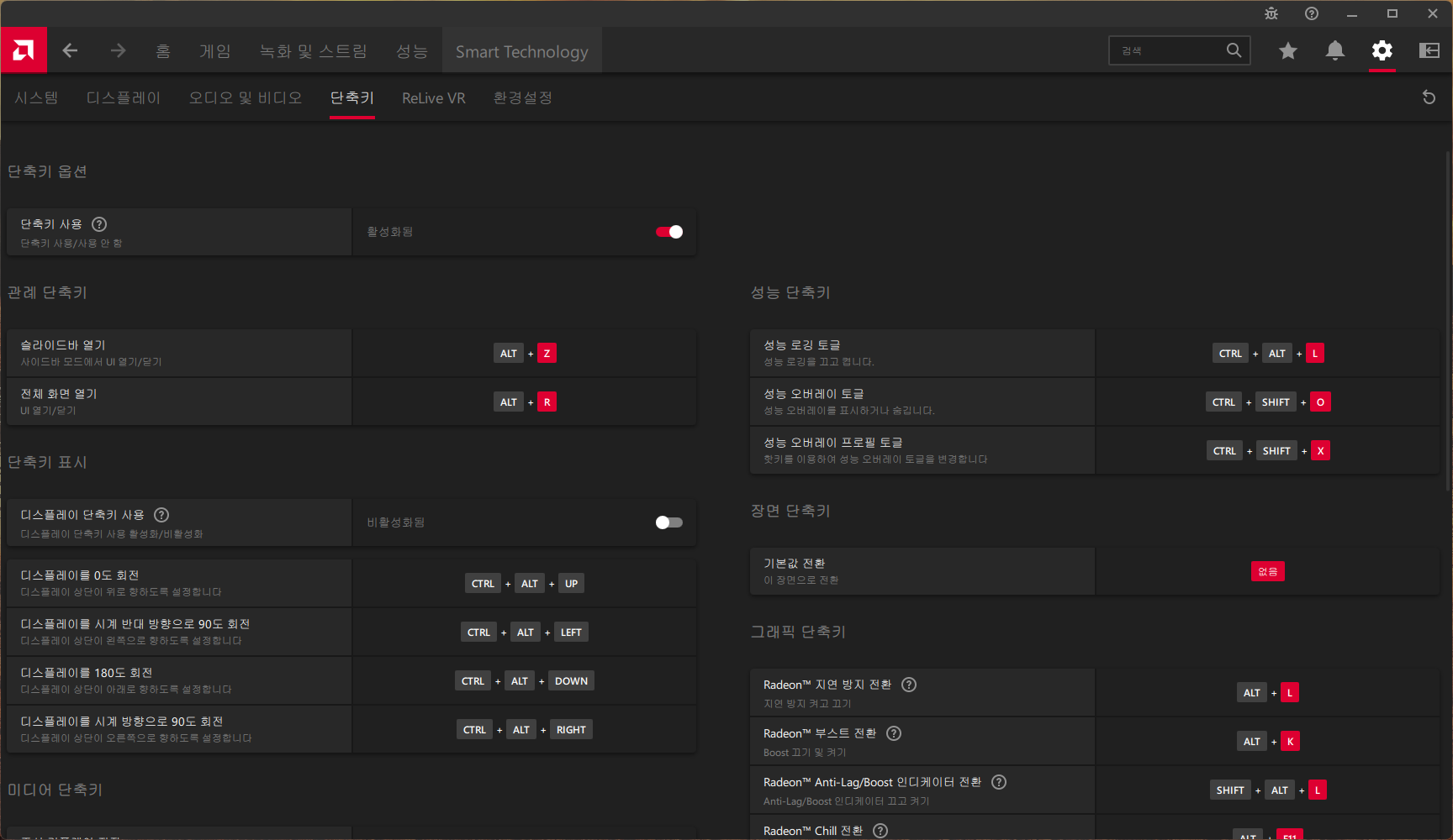 단축키 표시(디스플레이 단축키 사용, 회전)