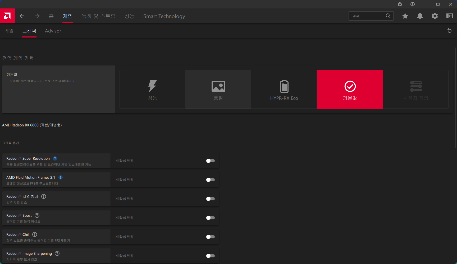그래픽카드 기종 및 사양에 따라 표시되는 화면이 다를 수 있으며 옵션이 활성화가 되지 않을 수도 있습니다.