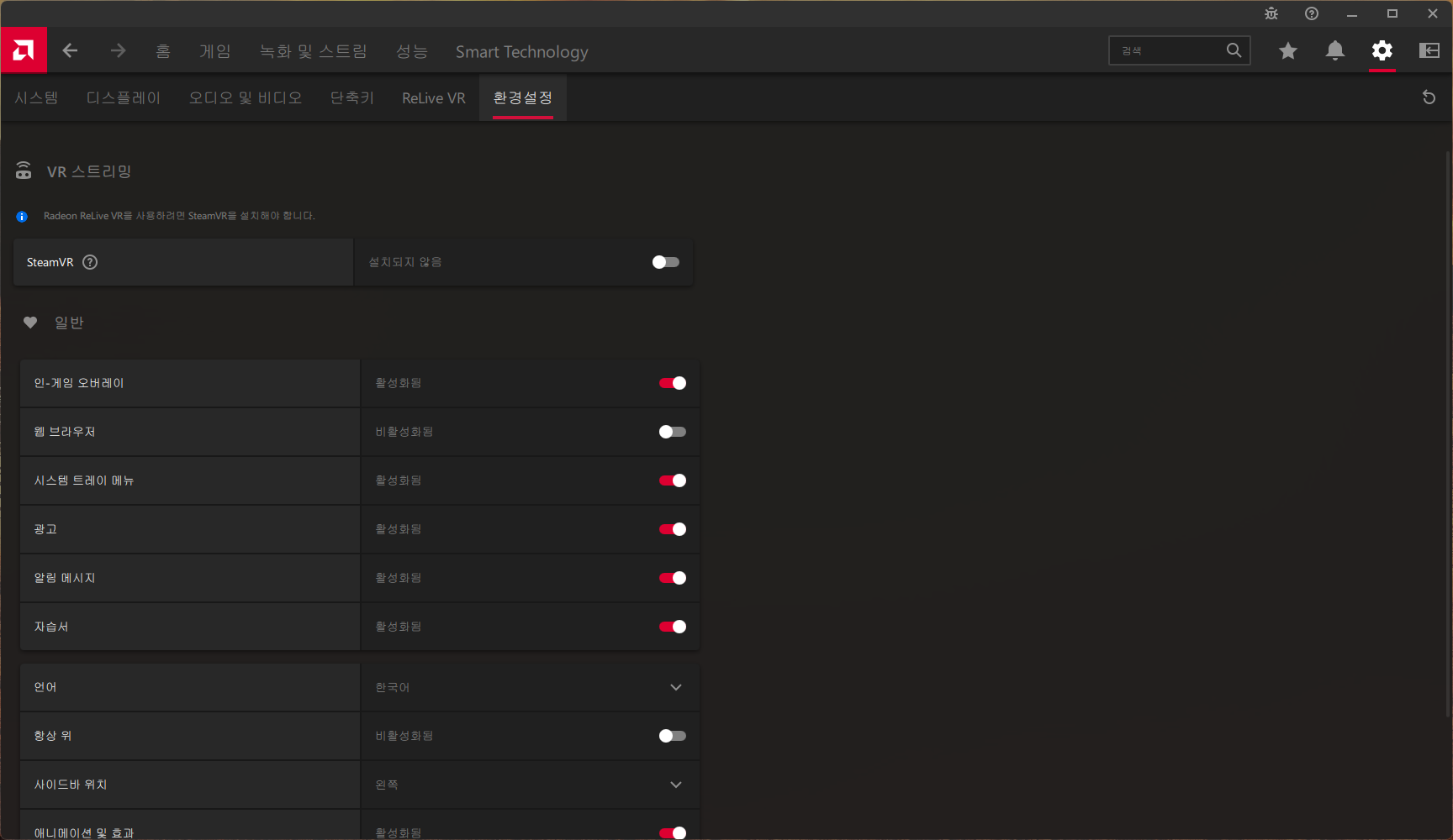 일반(인-게임 오버레이, 시스템 트레이 메뉴, 언어)