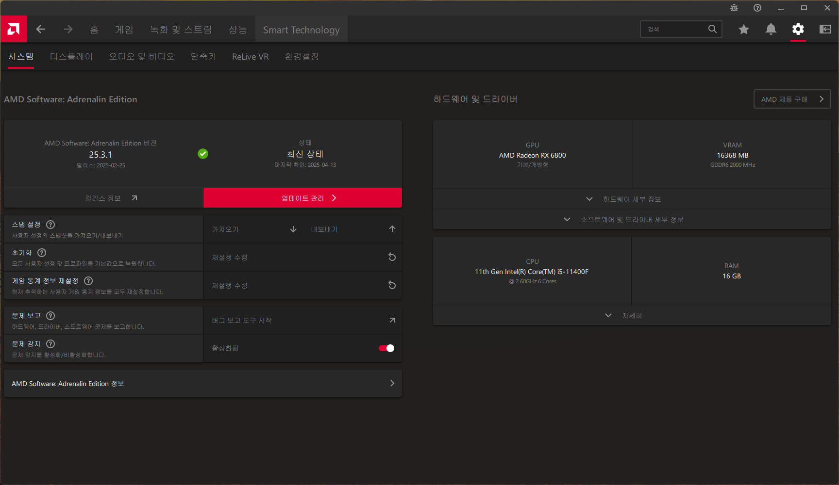 AMD Adrenalin은 AMD Radeon 그래픽카드 드라이버 업데이트 및 관련 설정을 해주는 소프트웨어이다.