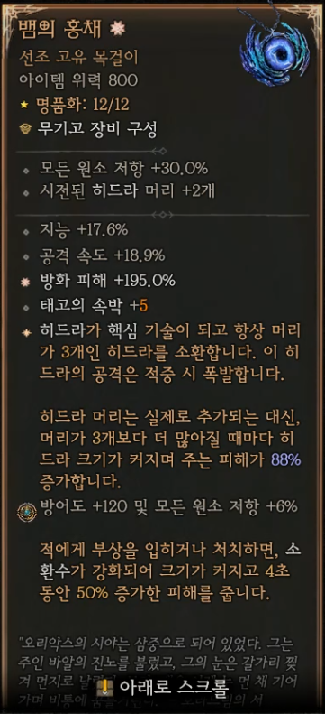 디아블로4 시즌9에서 원소술사의 뱀의 홍채 목걸이 아이템 추가와 함께 히드라 대미지가 대폭 상승한 것 같다.