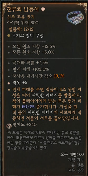 1-7. 반지 1: 전류의 남동석(번개 피해 시 짜릿한 에너지 방출)