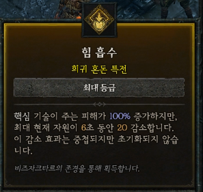 6-2. 희귀 혼돈 특전: 힘 흡수(핵심 기술이 주는 피해 증가, 자원 감소)