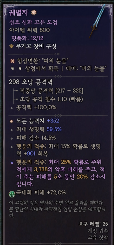 1-9: 한 손 무기: 궤멸자(공격력, 암흑 피해, 피해 감소)
