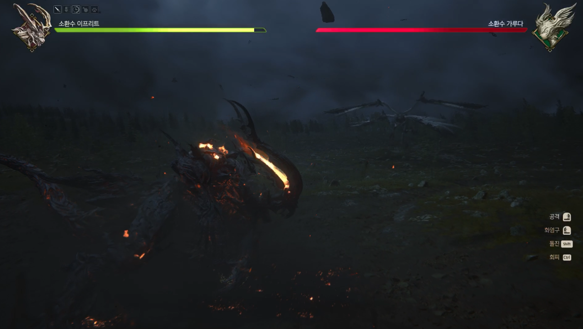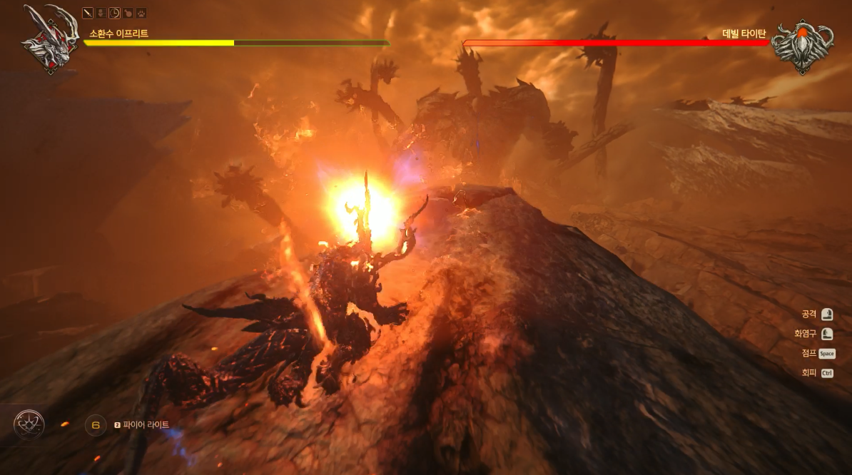 소환수 이프리트와 소환수 타이탄의 대결로 이프리트가 달려가면서 피하고 공격하는 장면이 인상적이다.