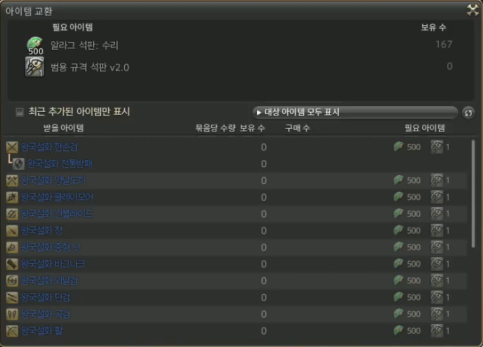 알라그 석판: 수리 거래(아이템 레벨 750 무기)