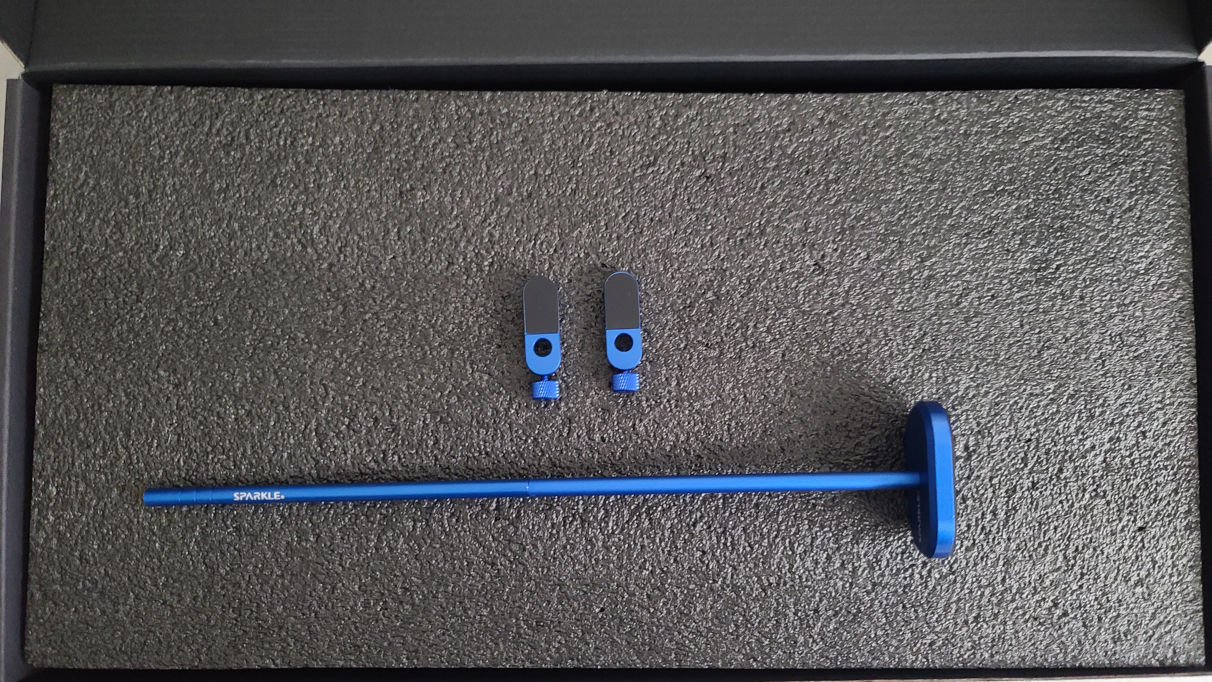 1. 지지대 발판 부분을 밑으로해서 일자 봉 두개를 연결하고 드라이버 방식으로 돌려서 장착한다.