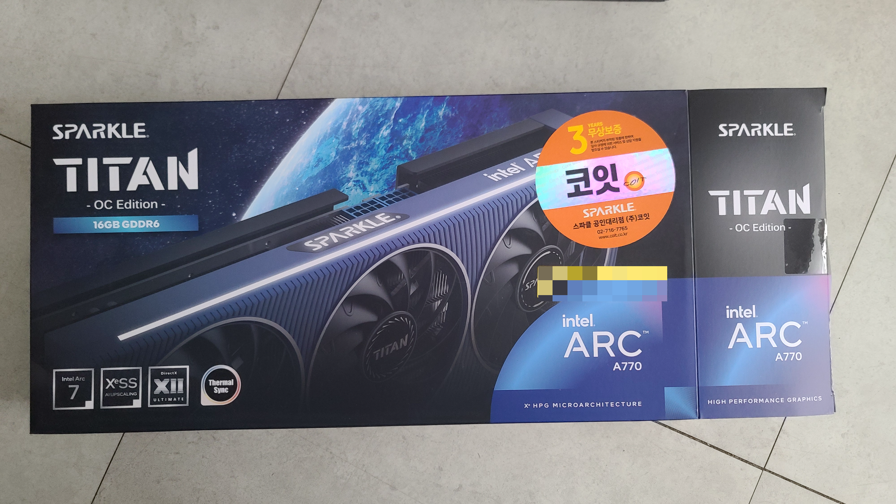 스파클(SPARKLE) 제조사 제품은 인텔(Intel) 제품과 외관상 디자인 부분이 다르며 가격적인 차이가 있다.