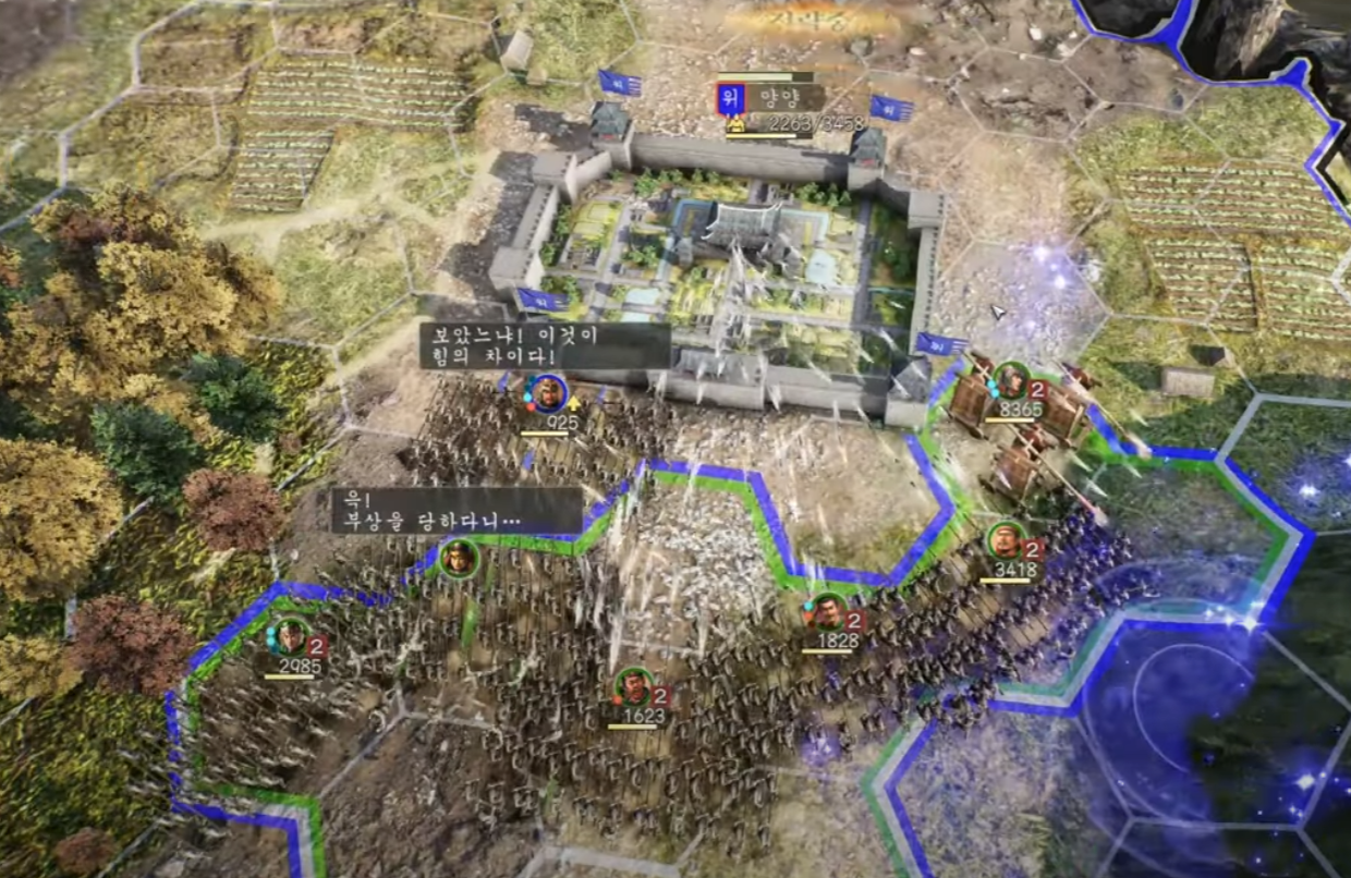 평지 전투 시 무장의 특수능력이 발휘될 수 있으며 성을 함락하기 위해서는 일정 범위의 영역을 확보해야 한다.
