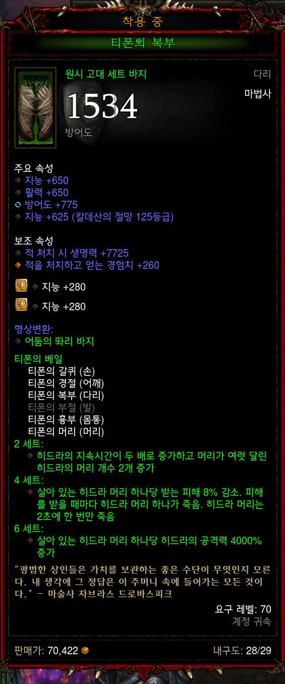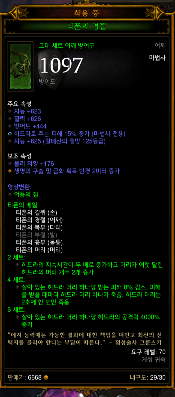 티폰 세트 아이템은 히드라에 맞춰진 세트 아이템으로 6세트 효과가 발휘될 수 있게 착용한다.