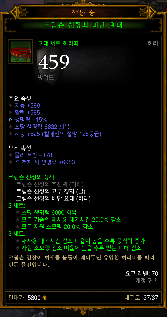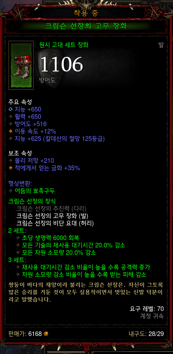 크림슨 선장 세트 아이템은 재사용 대기시간 감소를 위해 필수 아이템으로 3세트 효과가 발휘되게 착용한다.