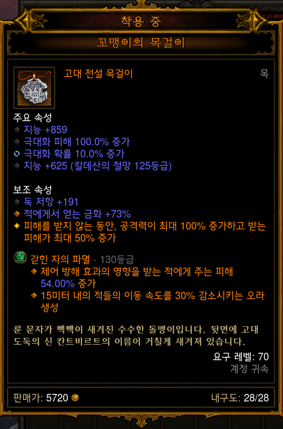 목걸이는 꼬맹이의 목걸이로 공격력과 피해 증가를 위해 추천한다.