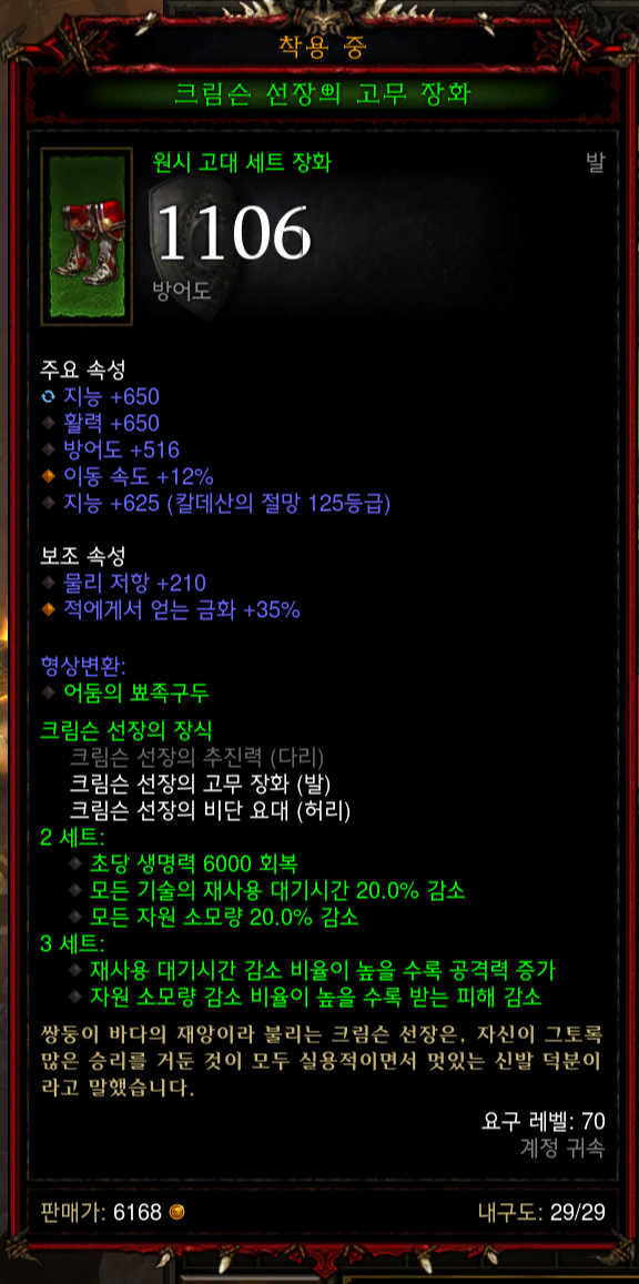 크림슨 선장의 장식 세트 아이템은 재사용 대기시간 감소, 공격력 증가 옵션이 있어 3세트 효과로 착용한다.