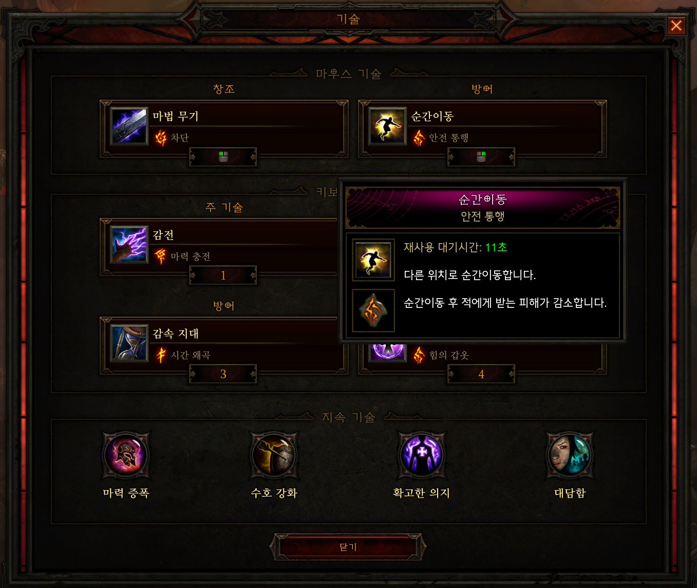이 효과로 생성되거나 직접 시전한 감속 지대 안에 있는 동안에는 순간이동의 재사용 대기시간이 초기화됨