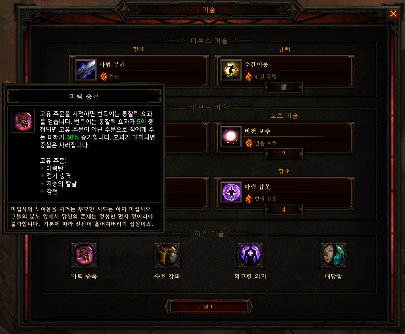 번득이는 통찰력 효과가 5회 중첩되면 고유 주문이 아닌 주문으로 적에게 주는 피해가 60% 증가합니다.