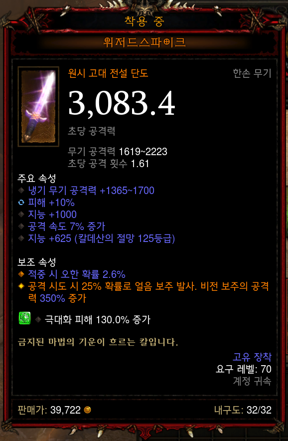 위저드스파이크 한손 무기는 보조 속성에 비전 보주 공격력 증가 옵션이 있어 추천한다.