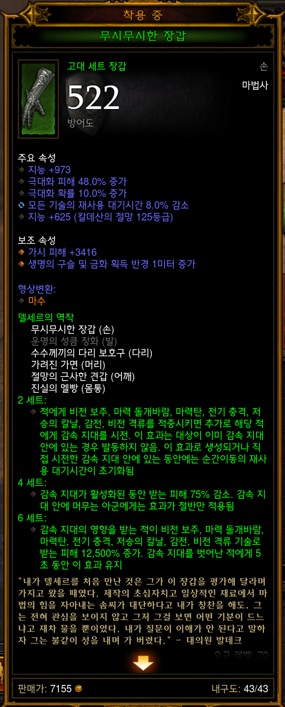 델세르의 역작 세트 아이템 6세트 효과로 비전 보주로 받는 피해 증가를 추천한다.