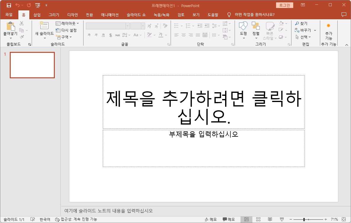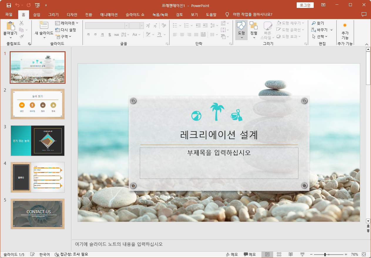 발표 용도의 슬라이드 작성 시 추가 테마를 활용하면 편리하다.