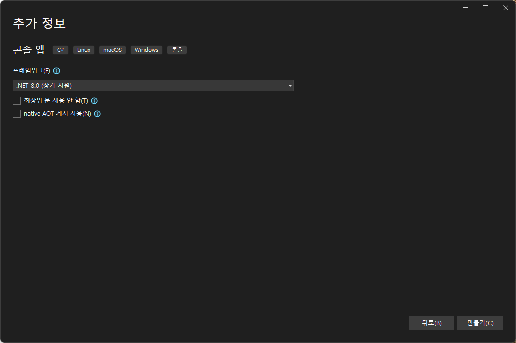 프로젝트 템플릿에서 콘솔 앱을 선택한다.
