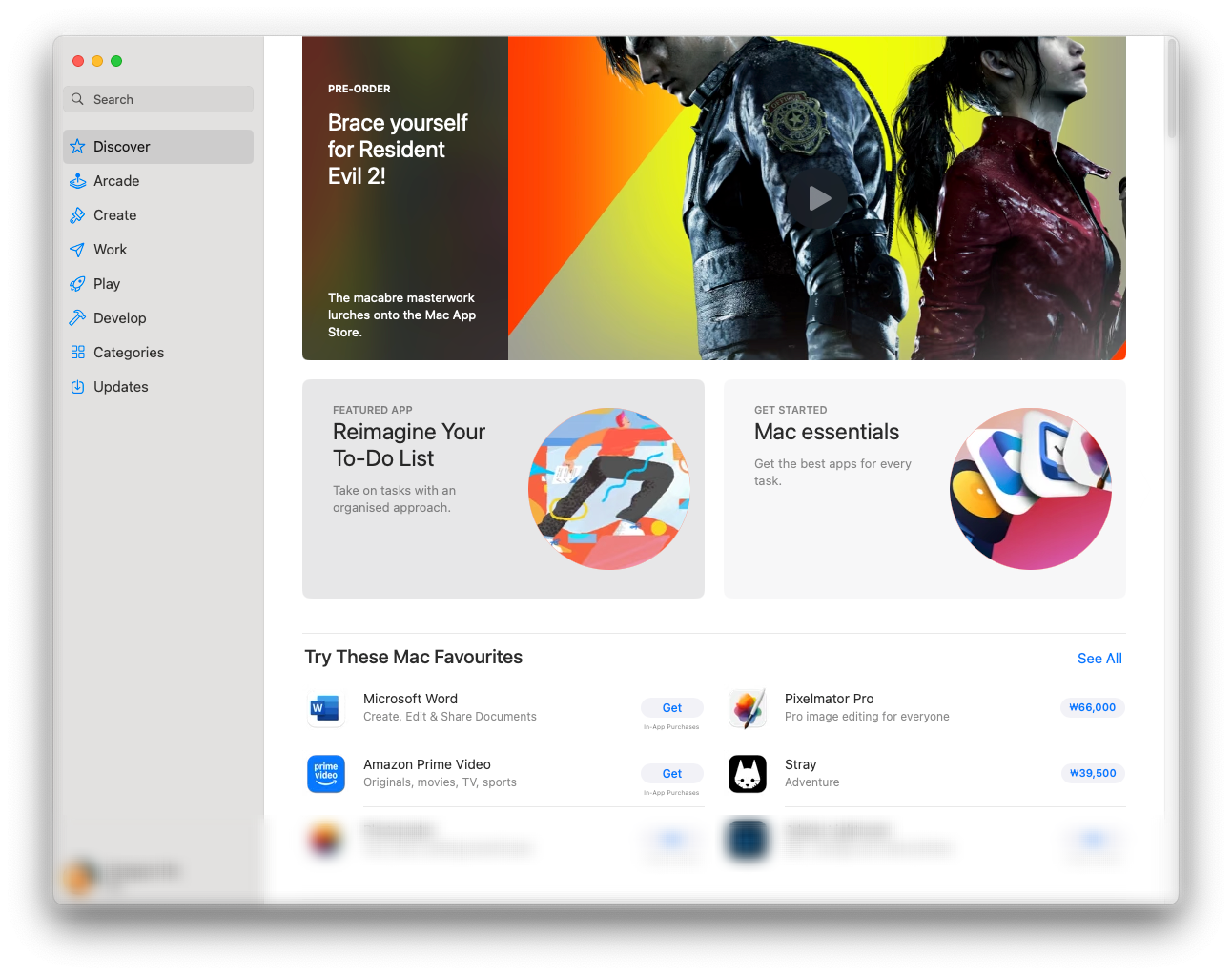 Apple App Store맥 운영체제(Mac OS)에서 설치가능한 소프트웨어가 카테고리별로 정리되어 있는 스토어(Store)이다.문서, 사진, 영상, 게임, 개발 관련 앱(App)을 무료, 유료로 구매해서 다운로드 및 설치할 수 있다.DiscoverArcade AppsArcade Game: NBA 2K25 Arcade EditionCreate Apps 어도비 포토샵 엘리먼트(Adobe Photoshop Elements): 사진편집 응용 프로그램파이널컷프로(Final Cut Pro), 모션(Motion): 영상편집 응용 프로그램Work AppsAuthor: Minimallist, powerful writingPlay AppsNEW GAME, PRE-ORDERDevelop AppsXcode: macOS, ..