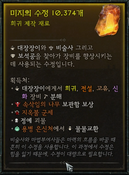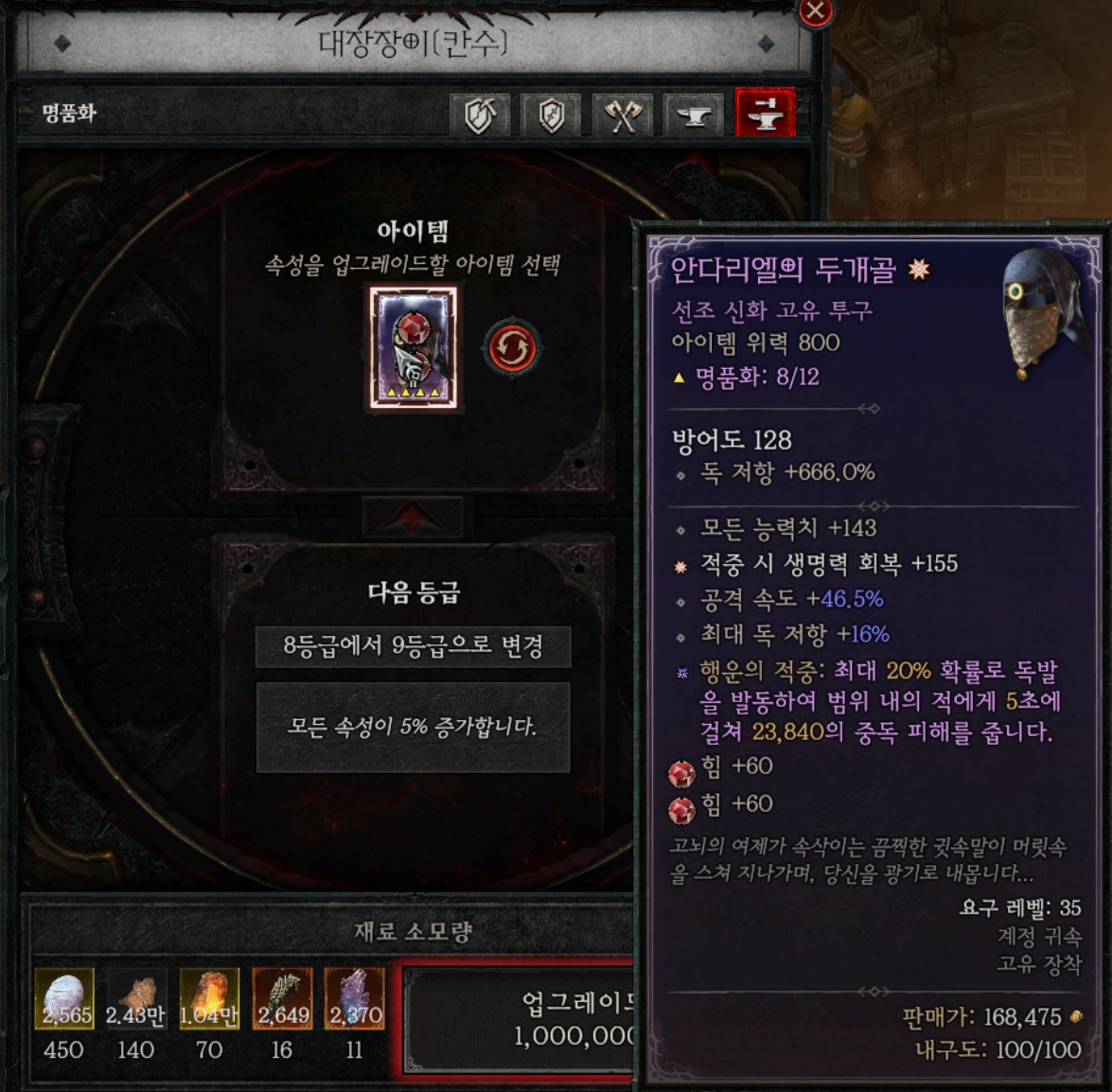 디아블로 4 시즌 6에서는 명품화 등급 변경에 필요한 재료 중 옵두나이트는 모든 등급 변경에 사용가능 하다.