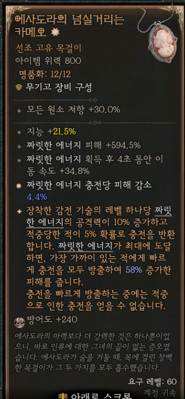 1-6. 목걸이: 에사도라의 넘실거리는 카메오(짜릿한 에너지 피해)