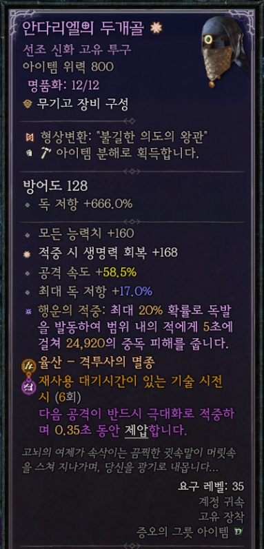 1.1 투구: 안다리엘의 두개골(적중 시 생명력 회복, 공격 속도 증가)