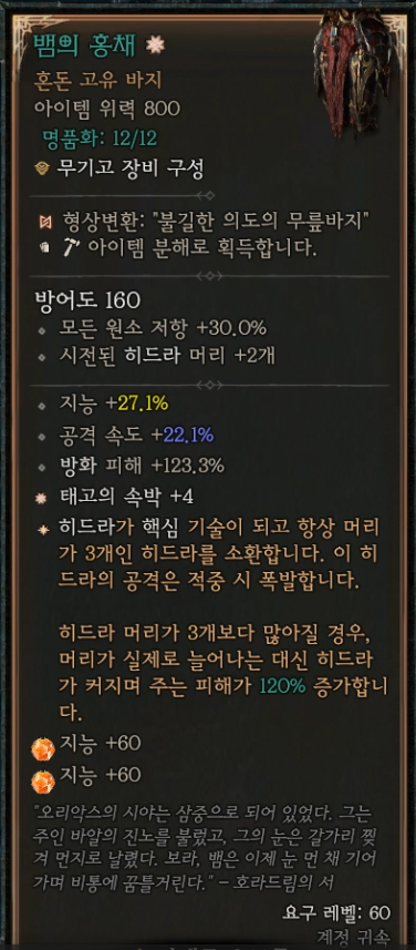1-4. 혼돈 바지: 뱀의 홍채(머리가 3개인 히드라 소환)