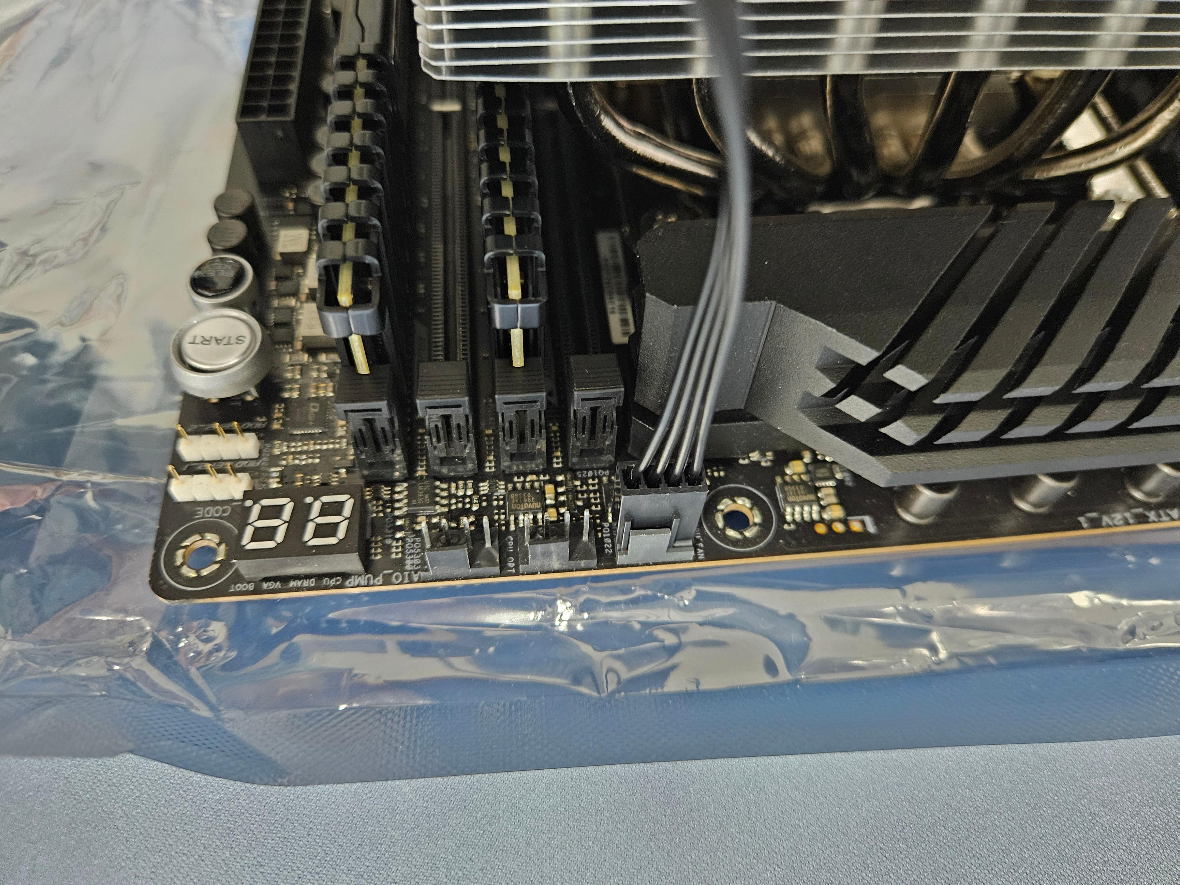 메인보드에서 제공하는 CPU 팬 전원부에 CPU 쿨러팬 전원 핀을 장착한다.