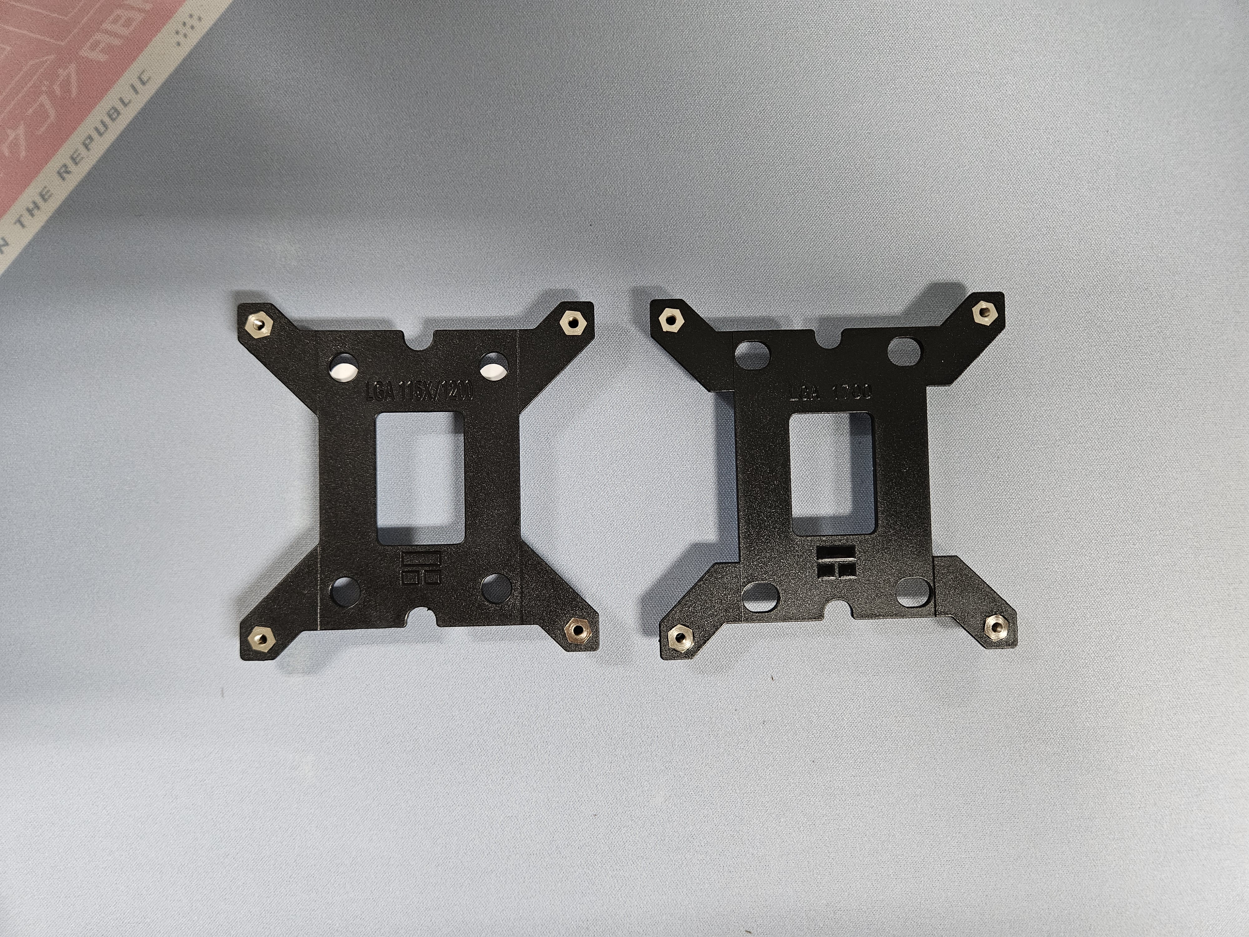 메인보드 뒷부분에 LGA 115X/1200 소켓 받침대를 장착한다.
