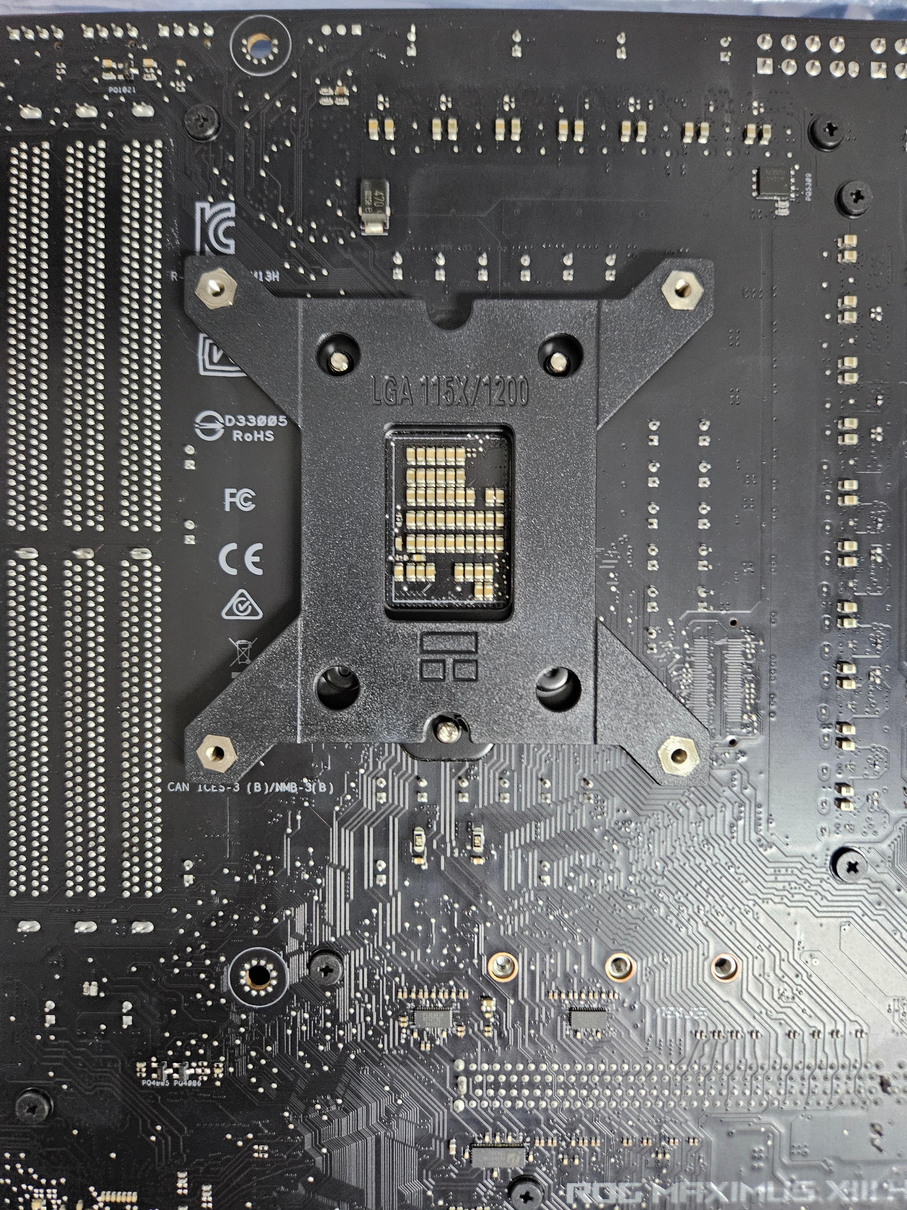 메인보드 뒷 부분에 LGA 115X/1200 소켓 받침대를 장착한다.