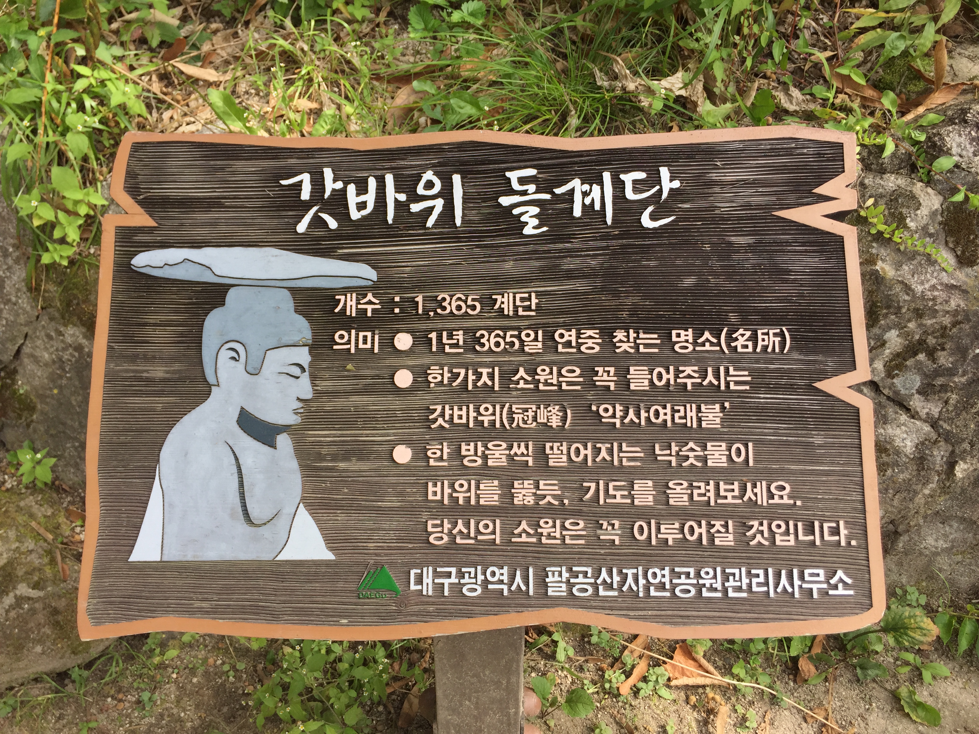 팔공산은 대구광역시의 중심에서 북동방향으로 약 20km지점, 낙동강과 금호강이 만나는 곳에 병품처럼 웅장하게 솟은 화강암으로 이루어진 해발 1,193m의 산이다.