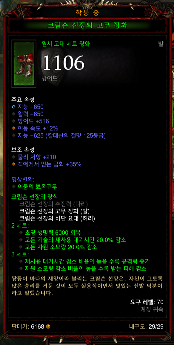크림슨 선장의 장식 세트 아이템은 재사용 대기시간 감소로 공격력을 증가할 수 있어 3세트가 적용되게 착용한다.