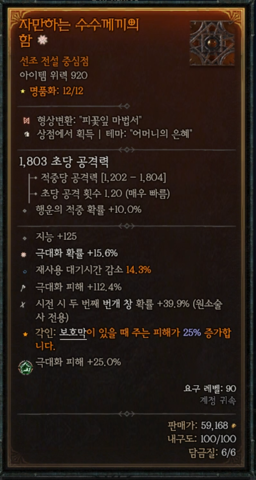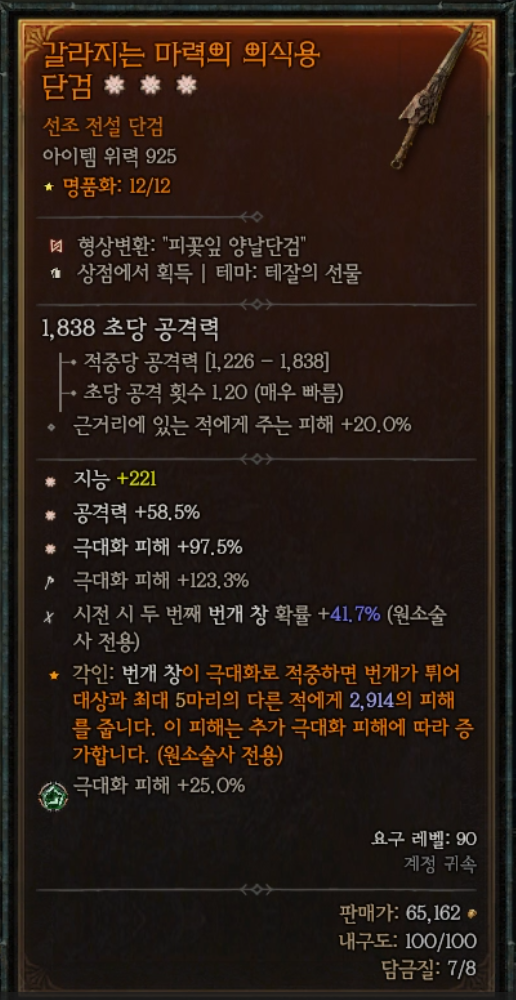 12. 얼음 칼날 5/5(아이템 기여: 4) - 강화된 얼음 칼날 - 소환한 얼음 칼날