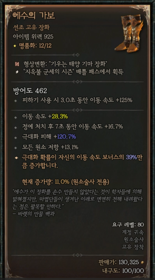 2. 에수의 과보(이동 속도 증가, 모든 원소 저항, 이동 속도에 비례한 극대화 확률 증가, 극대화 피해)