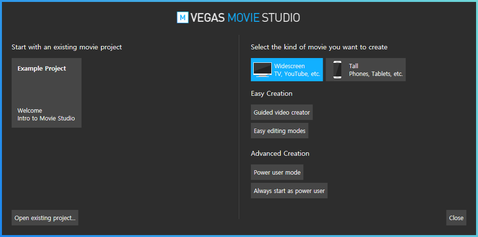 Movie Studio 17.0 Platinum 버전 기본화면 구성